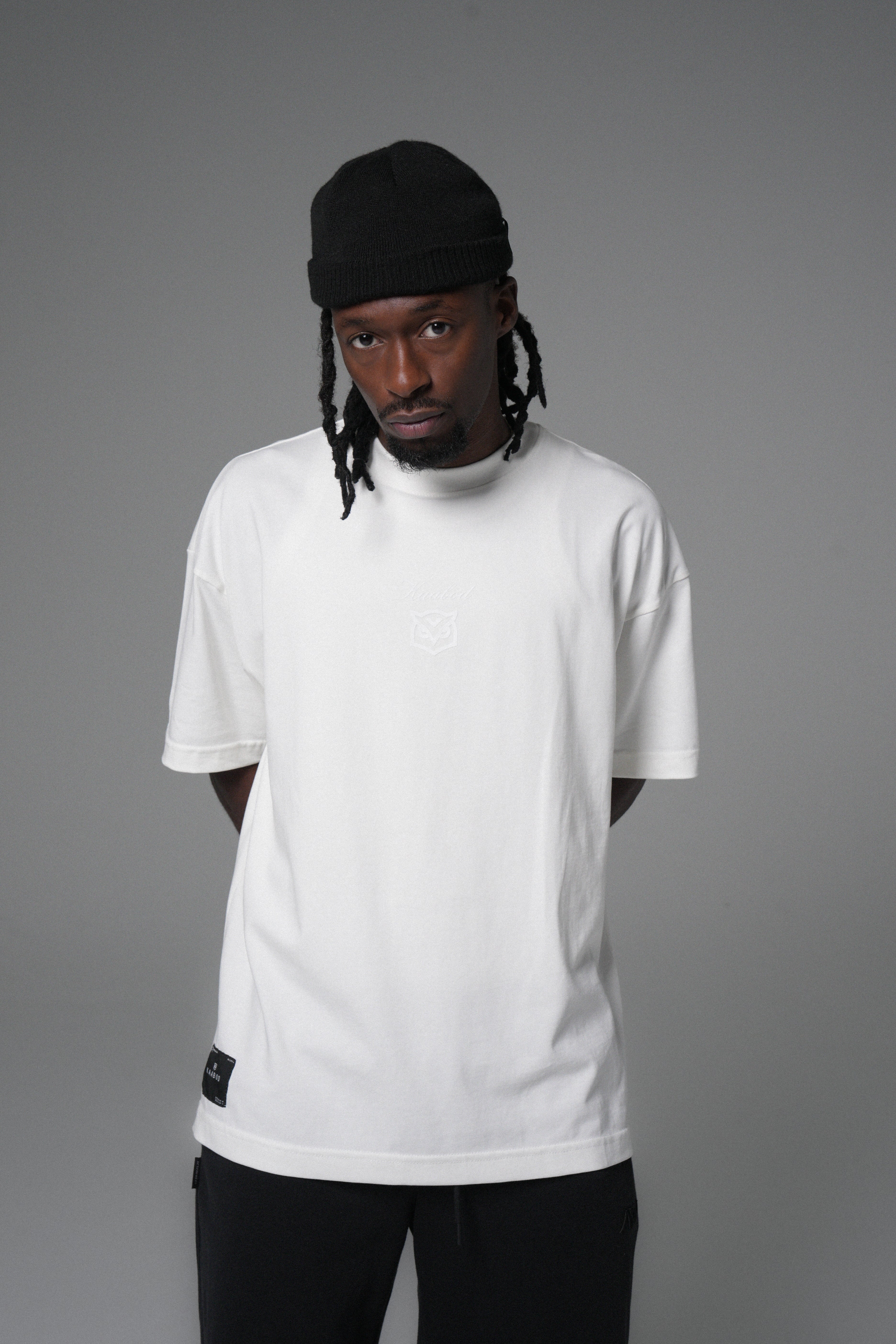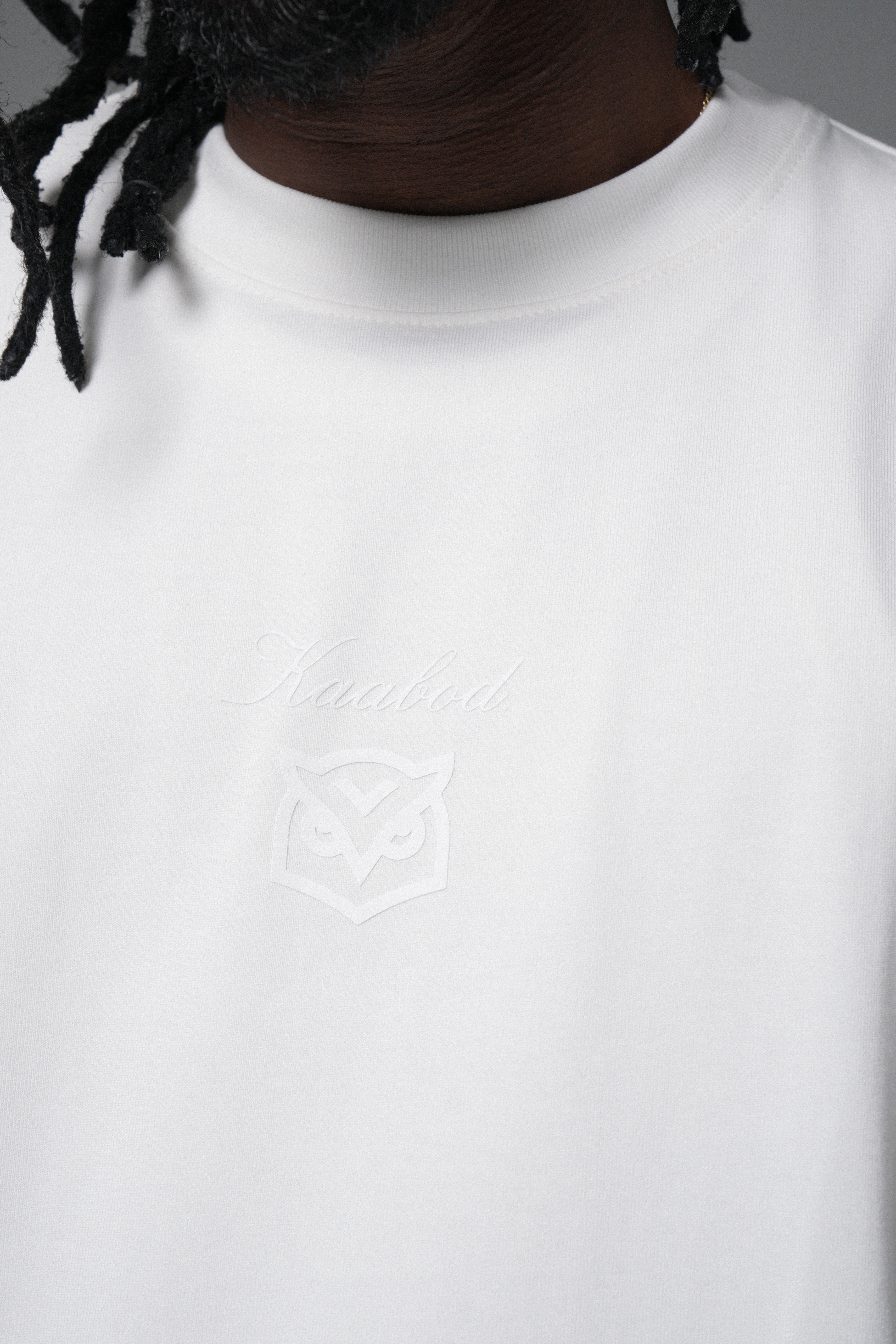 En el pecho: logo Kaabod (búho) en alta densidad tono a tono, sutil pero premium.