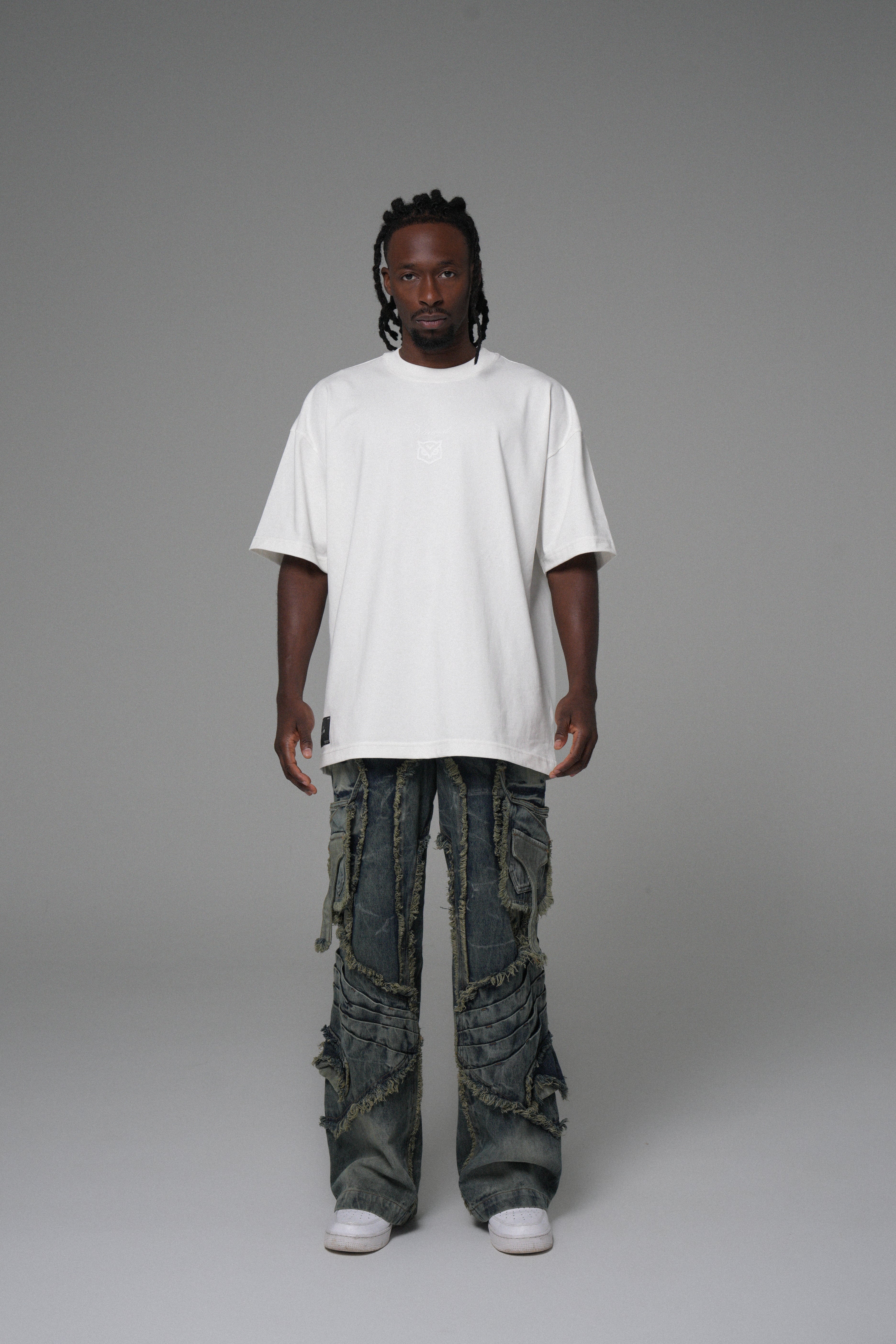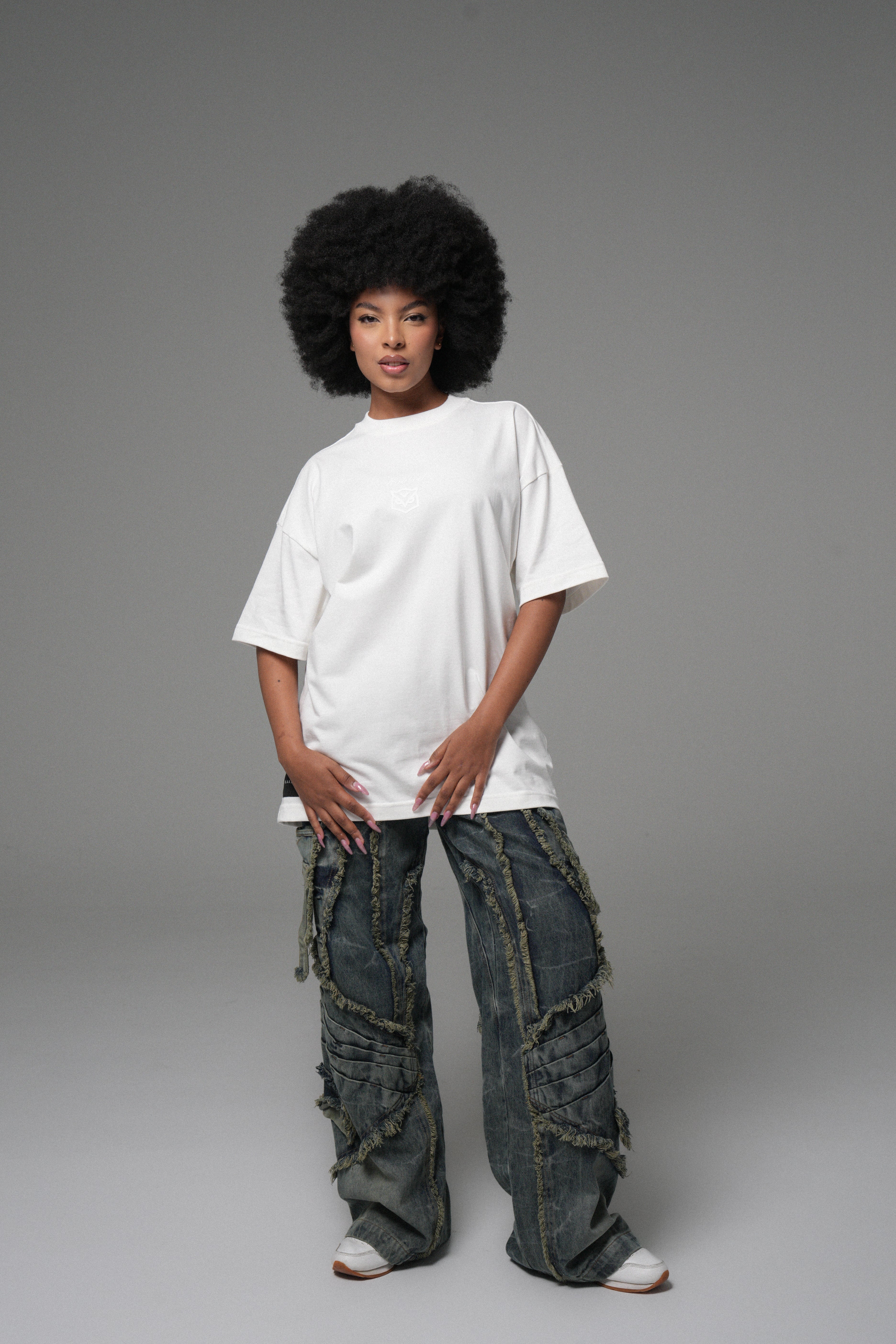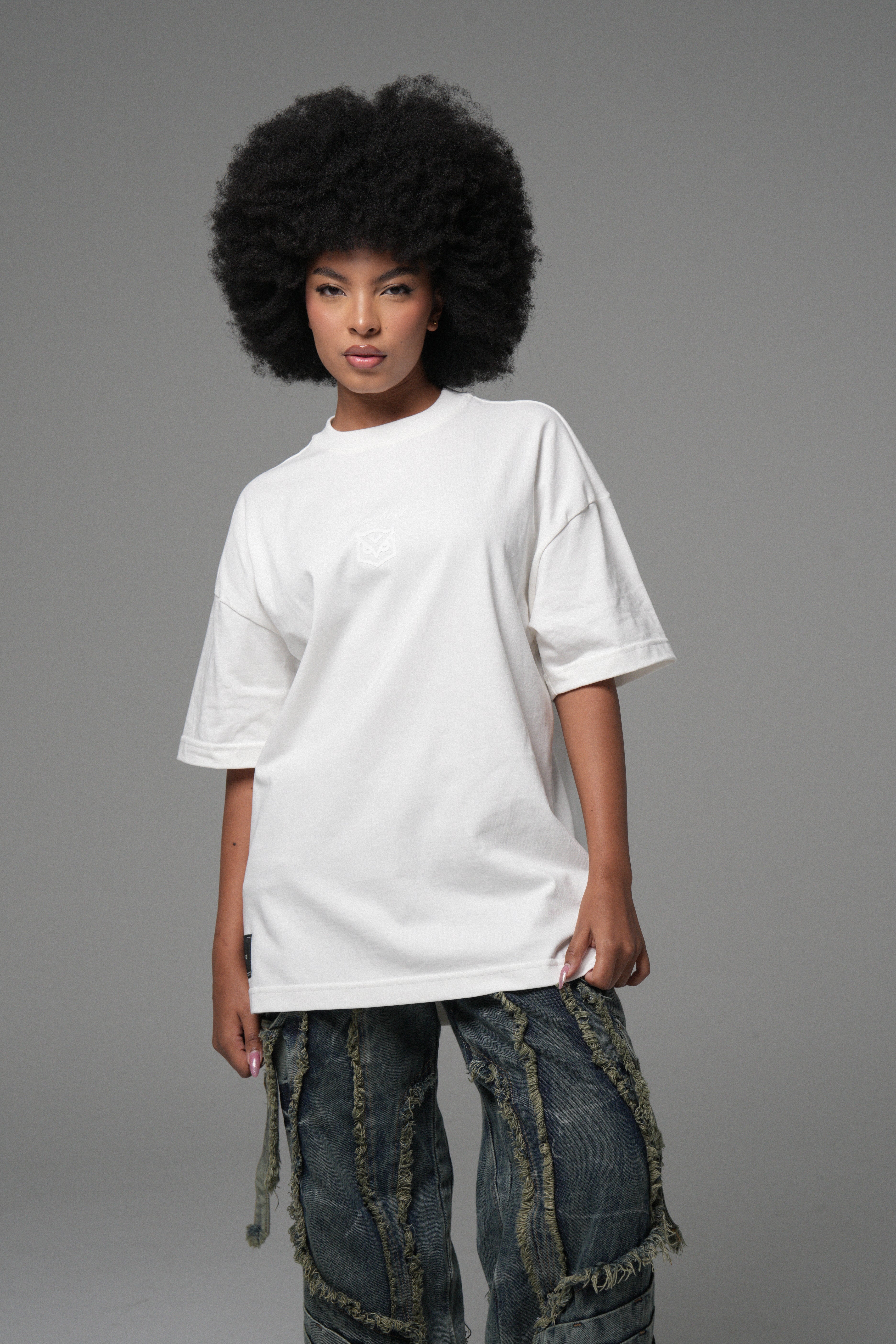 Algodón peruano 270g: pesado, firme y con caída limpia. Cuello en rib de alta calidad para mantener estructura con el uso.