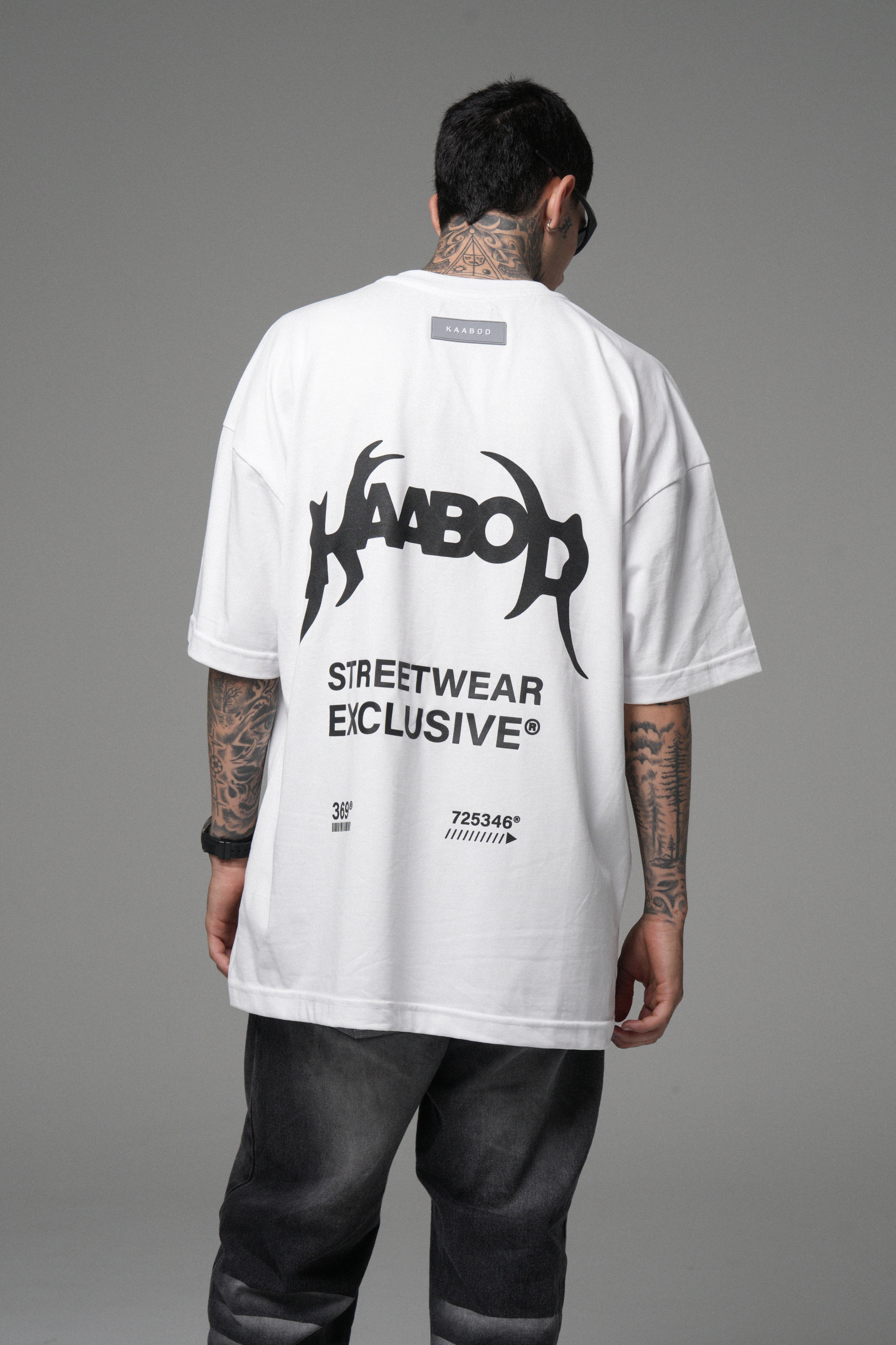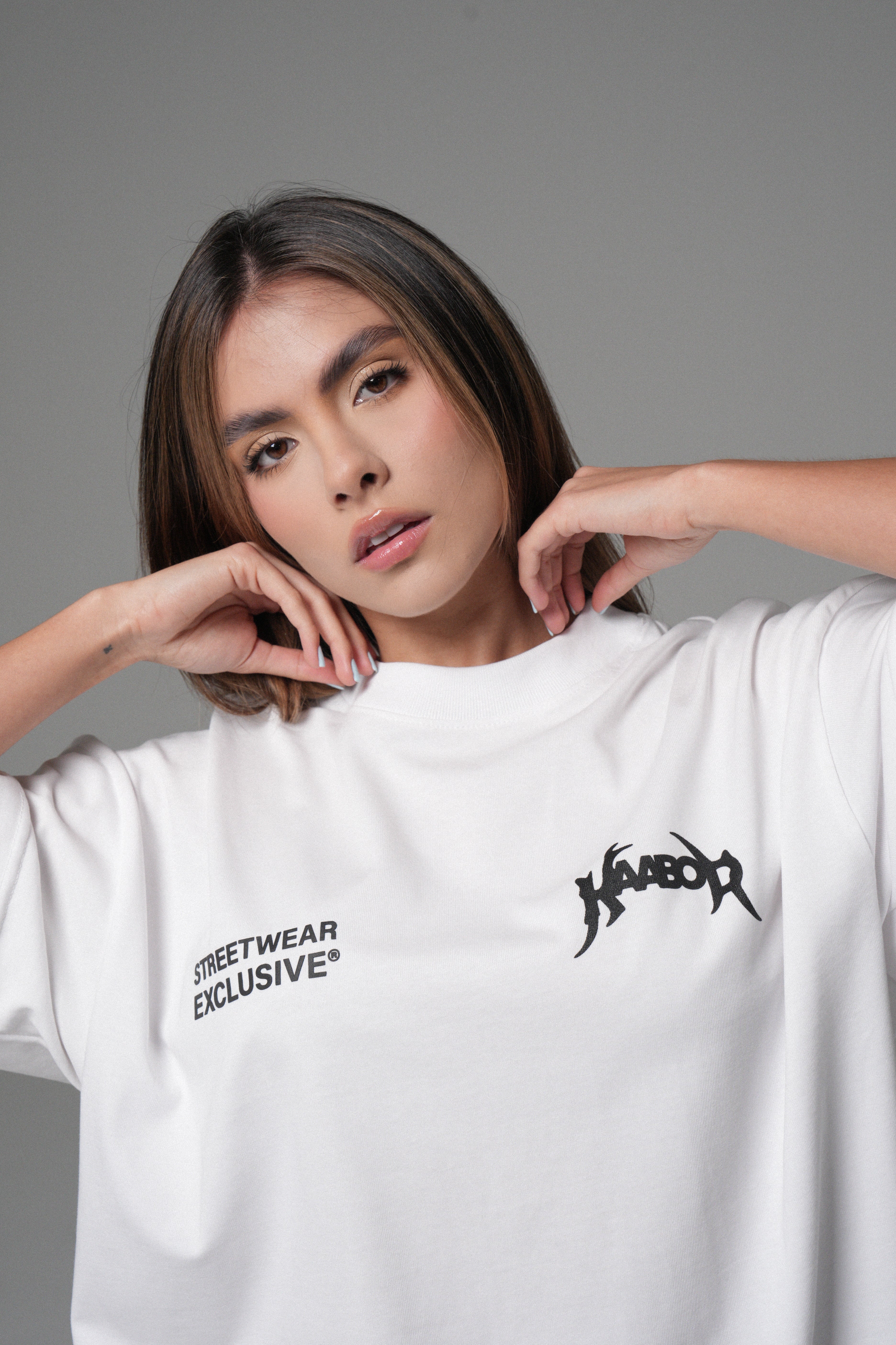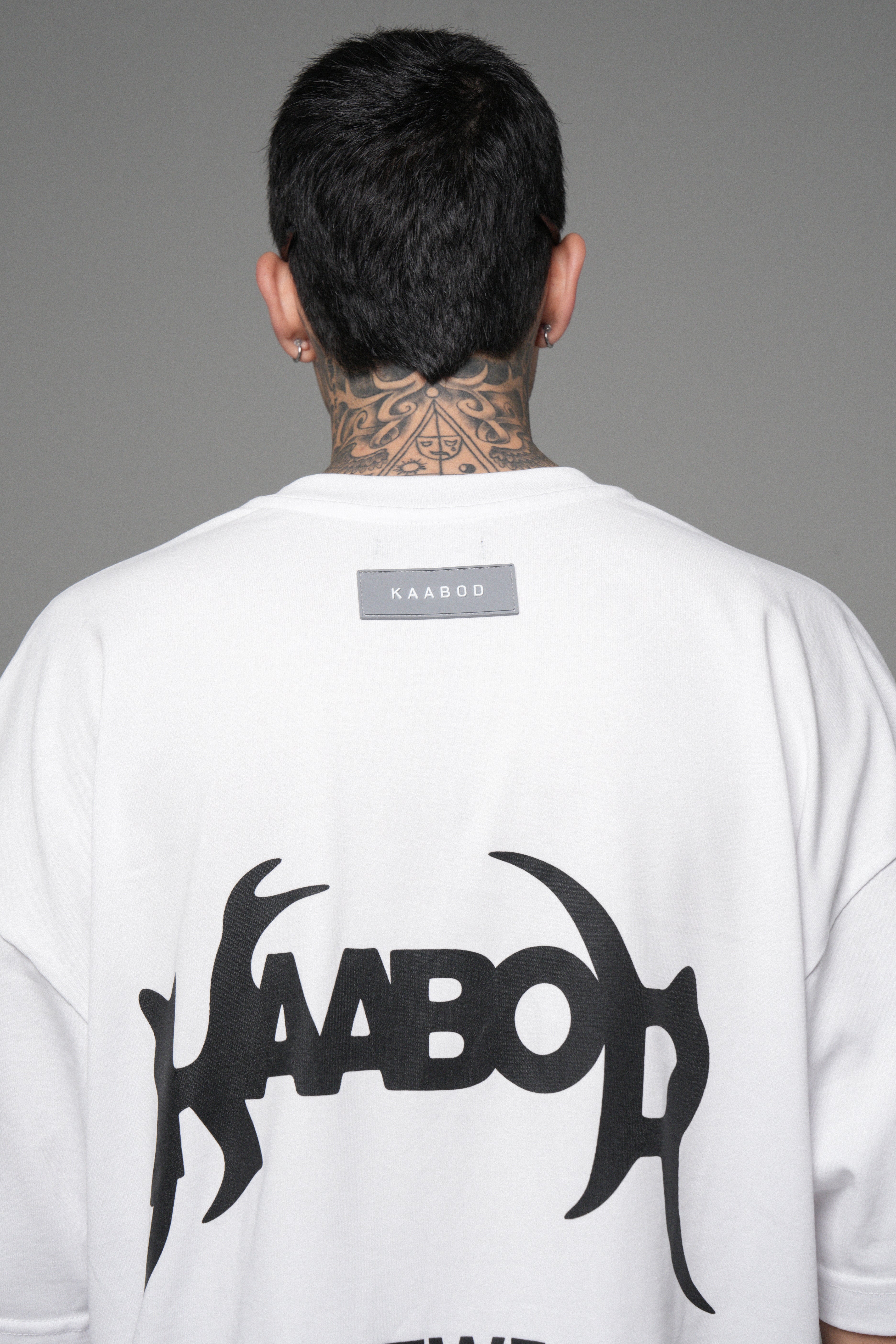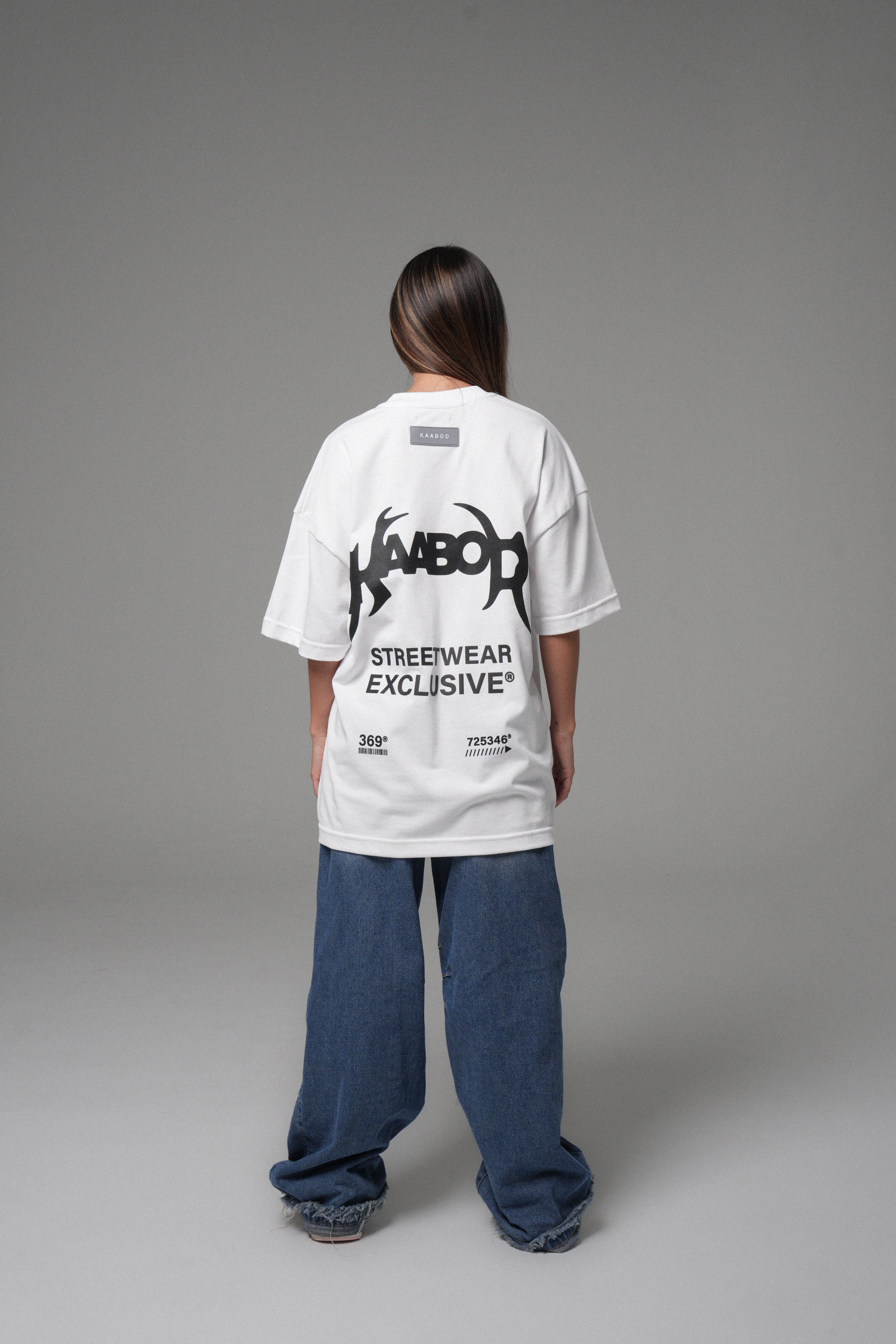 Blanco limpio, presencia alta. Algodón peruano 270g con caída premium, cuello Rib de alta calidad y estampado en alta densidad para un contraste nítido. Minimalismo con intención.